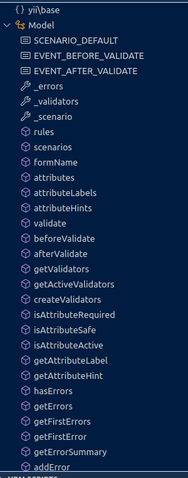 Note that our app\models\Base class (in row 7) "stems from" a hierarchy of 5 base classes above it (beginning in row 2).
