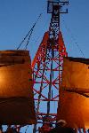 Dusk falls on the Eyreville deep core drill tower as the core bit pushes deeper into the impact breccia and reaches 2075-ft into the earth.