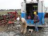 Jim Murray (l.) and Roger Morin (r.) prepare the first logging tool.