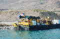 The DOSECC drill rig on the Dead Sea. All set up and ready to be towed to the site, some 6 km to the north east.