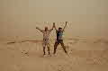 ICDP Executive Secretary Uli Harms and Head of Logging Team Jochem Kueck share a happy moment in Wadi Mishmar during a sand storm
