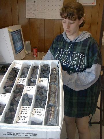 UN_Louise_1.jpg | Louise Bolge displays a box of highly-fractured basalt. | 0 - 0 |