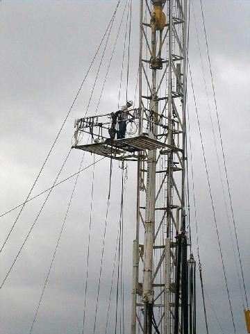 Vance installs the antenna which will provide e-mail access to the drill site.