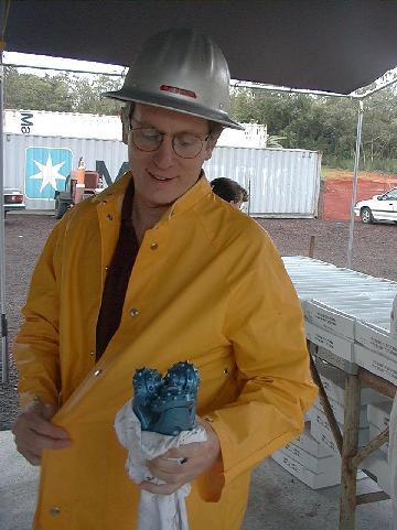 Don Thomas displays a tricone bit used for reaming the hole.