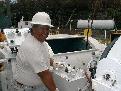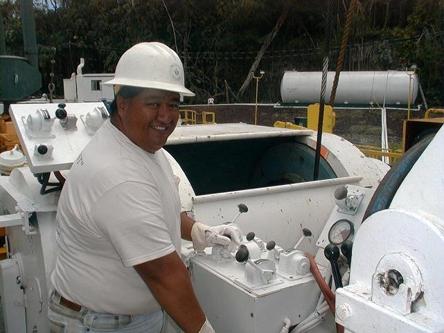 Kihei Ahuna at the controls of the drill rig.
