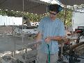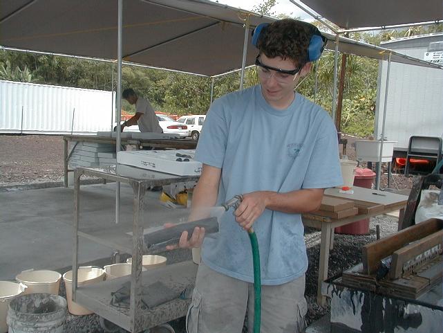 Doug Hutcheon rinses a piece of core after slabbing it.