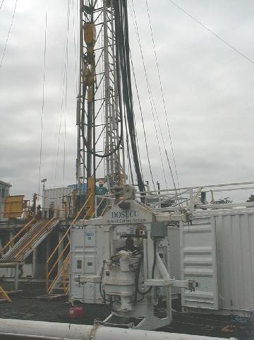 UN_TopDriveOnGround_1.jpg | The top drive that is used for coring sits idle on the ground (foreground) while drillers ream the hole (background). | 0 - 0 |