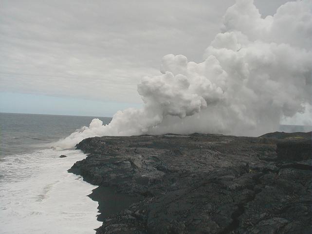 An upclose shot of the ocean entry. This entry is fed by lava tube that flows underground.