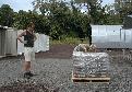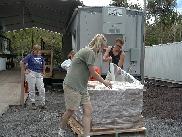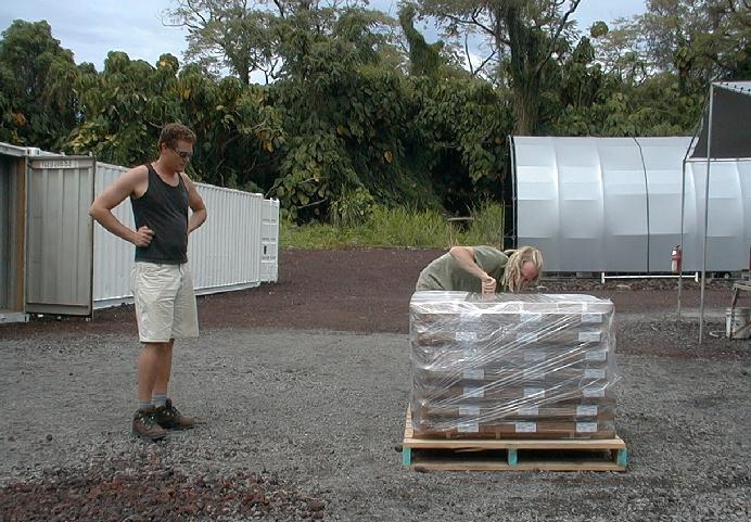 Angie oversees as the first 48 archive boxes are packed, taped, and put on pallets.