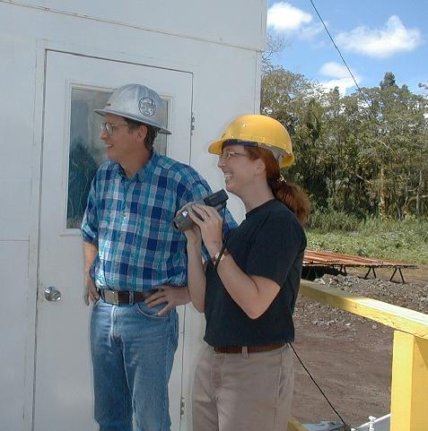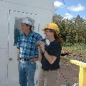 Trisha Smith from Discovery Online gets a tour of the drill site from Don Thomas.