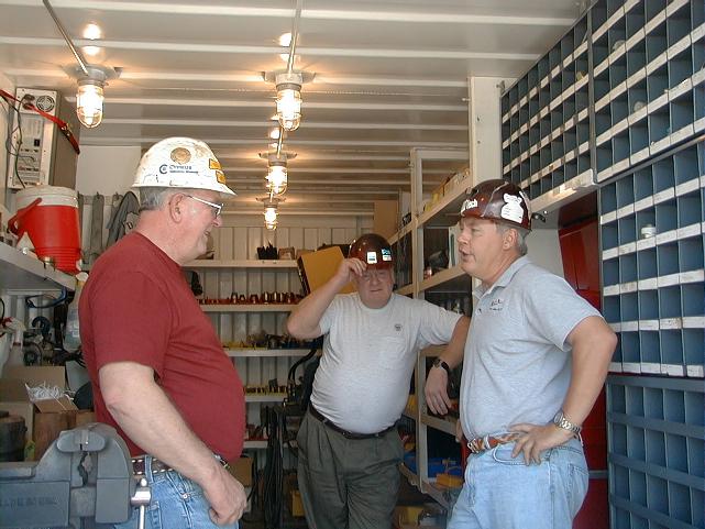 Marshall (right), Ron (center), and Bill (left) discuss what equipment is needed for the next phase of coring.