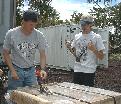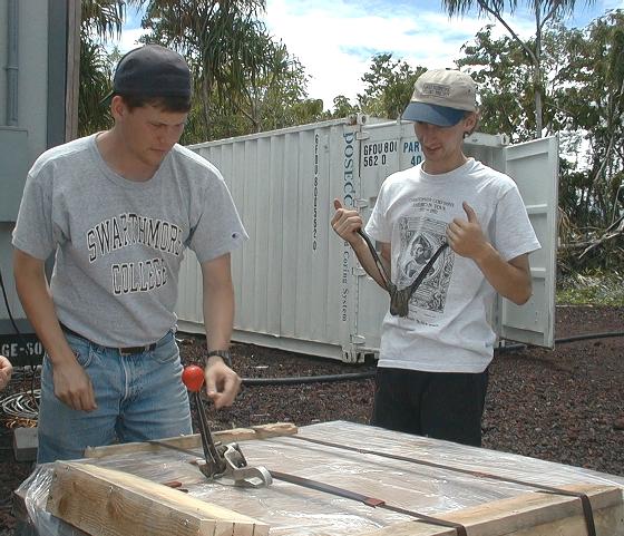 Ethan and Eric tightening the bands around the archive boxes.