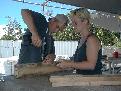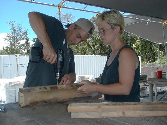 Matt and Maurine for UC Berkeley assemble protective corners for banding the archive boxes.