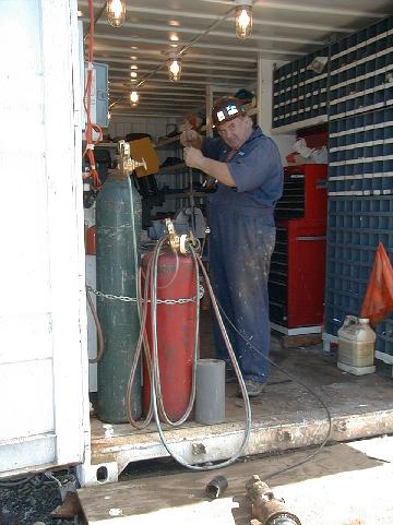 Ron fixes the cable that snapped last night when he was pulling up a core run.