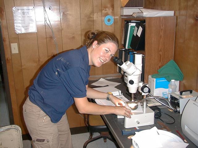 UN_GeorgeAtScope_1.jpg | Georgina Doughty looks at some secondary minerals under the microscope. | n.a. - n.a. |