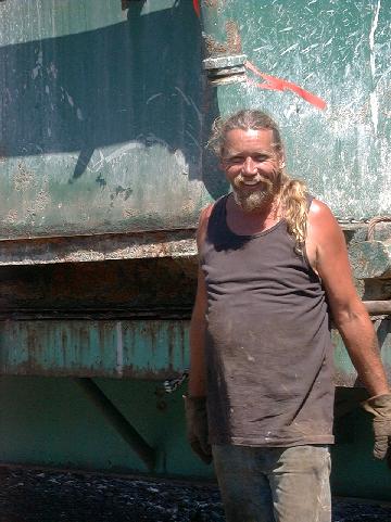 Craig smiles after he and the Water Resources crew successfully loads the heavy mud tank onto the rig.