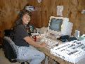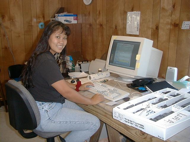 Fran Coloma logs her last box.