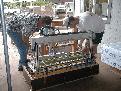 Les Wallace and David Whilldin lower the core scanner into its custom made shipping crate.
