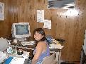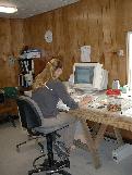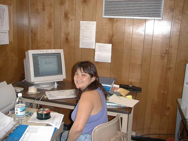The well head stands in the middle of an empty drill site. The logging trailer is in the background.