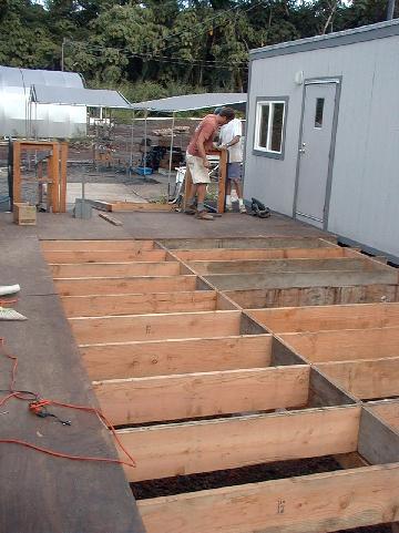 UN_Removing_deck_1.jpg | Les and David tear apart the deck between the geology offices. | n.a. - n.a. |
