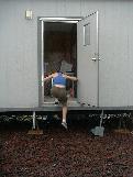 George tries to climb into the trailer