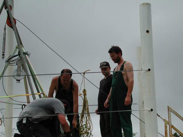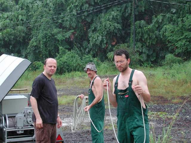 David, Joerg, Mathias and Guenter set up the tripods for the logging tools.