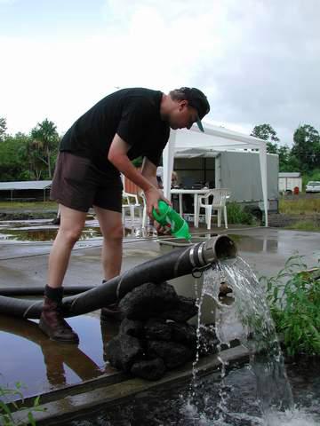 Guenter measures the outflowing water.