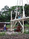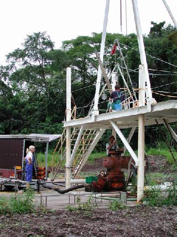 We run into the hole with the packer, the logging device and the DTS. For that, we have to set a tubing every 3 m to extract water from the open hole section to the surface and record the