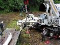 A crane was on site today to lift and place heavy objects like the top drive, as shown here.
