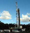 Almost 10,000 feet of drill pipe is stacked vertically on the drilling floor
