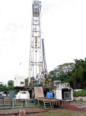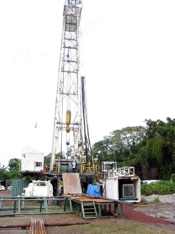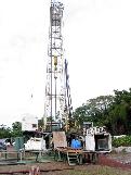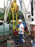 The beginning of the trip out of the hole: The first piece of pipe (and all those underneath it) is clamped and ready to be raised