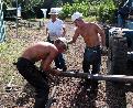 Shorty, Bill and Paul remove the old bit from the core barrel