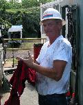 Bill wipes the grease off his hands in preparation for when the core barrel reaches the surface