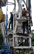 Bo and Shorty check over the top drive so it will function perfectly when we drill again in a few days
