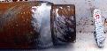During our first attempt to drill through the bent casing near the bottom of the hole, the threads on this stiff rod were stripped when the mill bit expired