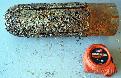 The old mill bit that we fished out of the hole. It is still in remarkably good shape, but its rounded end was not well suited to cutting into the casing. The new bit has a sharper edge and