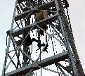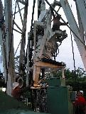 Paul attaches the top drive to its stabilization cables for drilling