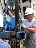 Bill runs the powertongs to unscrew attached lengths of pipe as we trip out of the hole