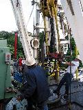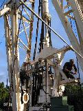 Shorty and Paul detatch the top drive so we can begin tripping out of the hole