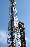 Paul peeks out behind the stack of drill pipe that we are tripping into the hole. Once at the bottom, we will be ready to begin coring new rock
