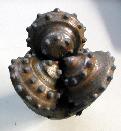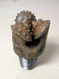 This is the tricone bit we just finished using to clean out the old borehole. It is not significantly worn, as most of its contact with the rock was on its outer circumference.