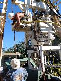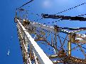 On his way up to the rack, Shorty secures the top drive so it will not interfere when we trip pipe
