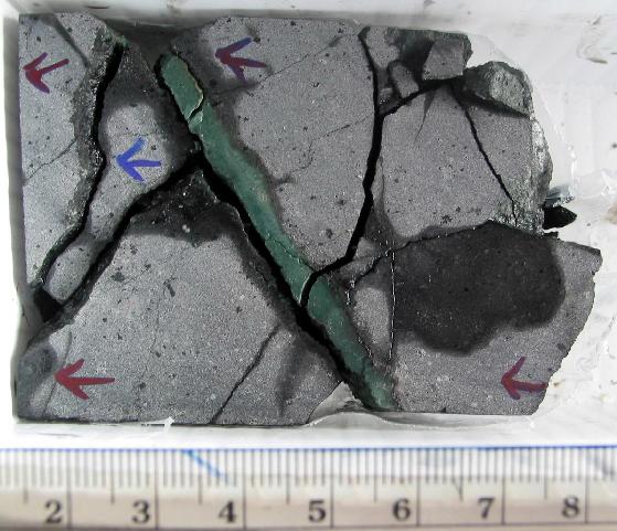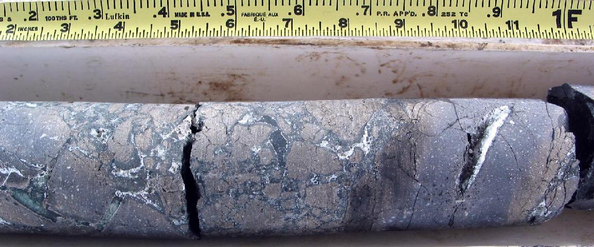 | UN_Secondary_Vein_HSDP-2b_1.jpg | While slabbing the core, Fred noticed this vein of secondary mineralization that filled a fracture |