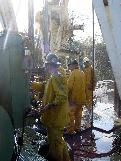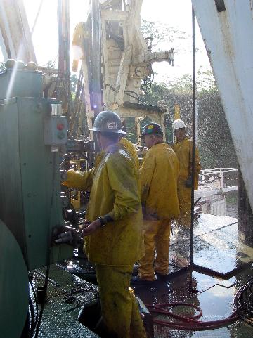 | UN_Smiling_In_The_Rain_HSDP-2b_1.jpg | The drilling crew smiles as they are doused with water coming out of the top of the drill pipe on this sunny morning |