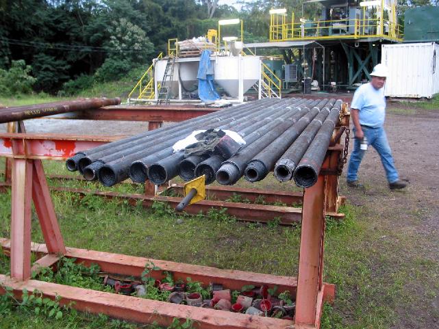 These lengths of pipe (called collars) are for when we switch to tricone rotary drilling. When we have difficulty coring, we will change to a tricone drill bit and put these collars directly above it.
