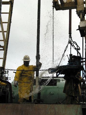 | UN_Water_Cannon_HSDP-2b_1.jpg | When the lenghts of pipe are separated, all of the water in the top piece rushes out onto the drilling floor. It generates a powerful spray that soaks everything and everyone in the area. |