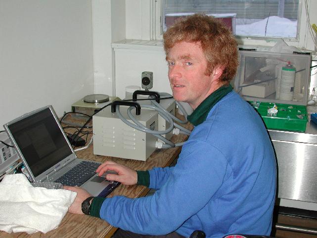 Johannes Kulenkampff (GFZ) at work in Inuvik for the group of the Petrophysical Investigations of Hydrate Bearing Drill Cores.