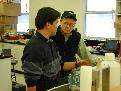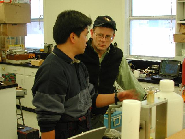 Toshiharu Okui (JNOC, Japan) on the left site and Fred Wright (GSC, Canada) on the right site in the Laboratory in the Inuvik Research Center.