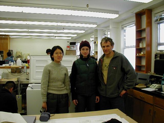 International Geochemistry group in the Inuvik Research Laboratory. From the left: Chen Yifeng (JNOC), Adriane Ethier and Ian Clark from the Ottawa University.