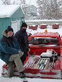 Mark Nixon and the night crew extract some of the first gas hydrate bearing core from the Mallik 5L-38 research well.